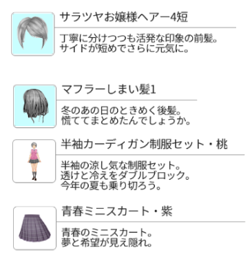 シャインパーツ。あれほどボリューミーな後ろ髪は流石になかった…。なんとか一番ボリュームのある後ろ髪にしてみた。制服はりんねと一緒。